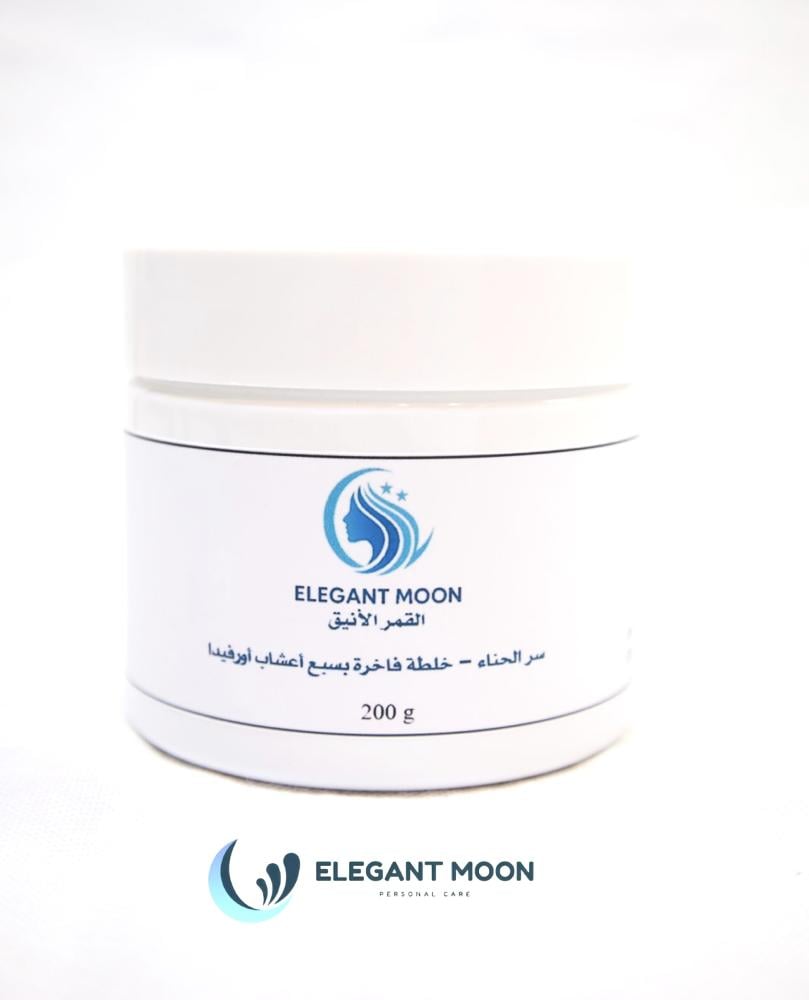 سرّ الحناء – خلطة فاخرة بسبع أعشاب أيورفيدا 200 جرام منتجات القمر الأنيق الخاصه